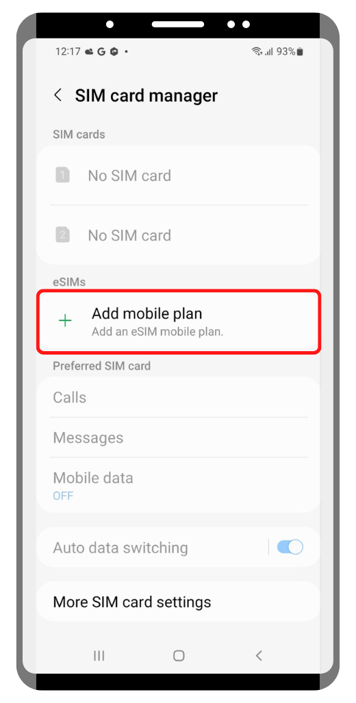 Tap on "SIM manager" > Tap "Add eSIM/Mobile plan"