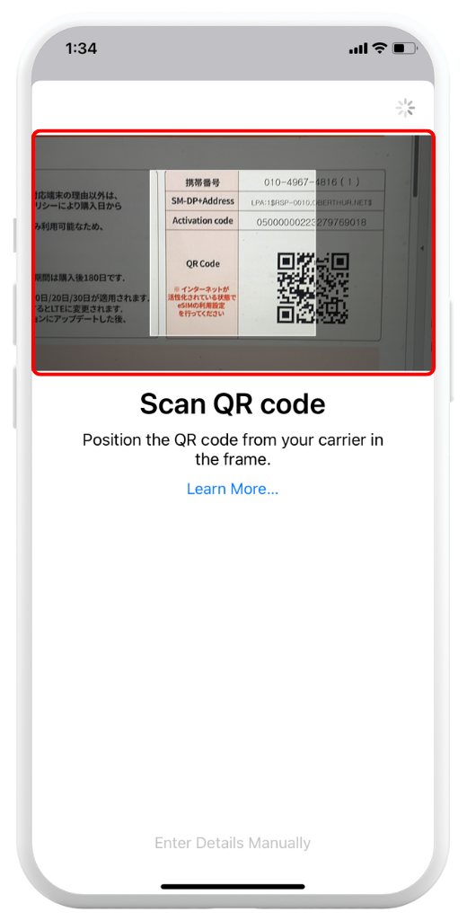 Tap Use QR Code > Enter Details Manually