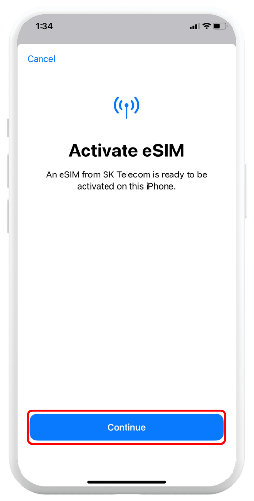 Select your new eSIM for Cellular/Mobile Data → Tap Continue